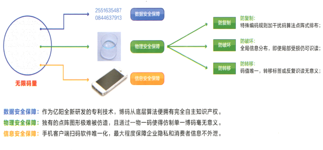 制假造假“零”存在?;诓┐a在數(shù)據(jù)層、物理層和信息層的高安全性,博碼本身不易被復制、破壞和轉(zhuǎn)移。博碼云平臺可全面保障博碼的附著印刷從系統(tǒng)數(shù)據(jù)庫直接推送和管控,無人為接觸可能,從源頭斬斷了造假分子的造假行為。